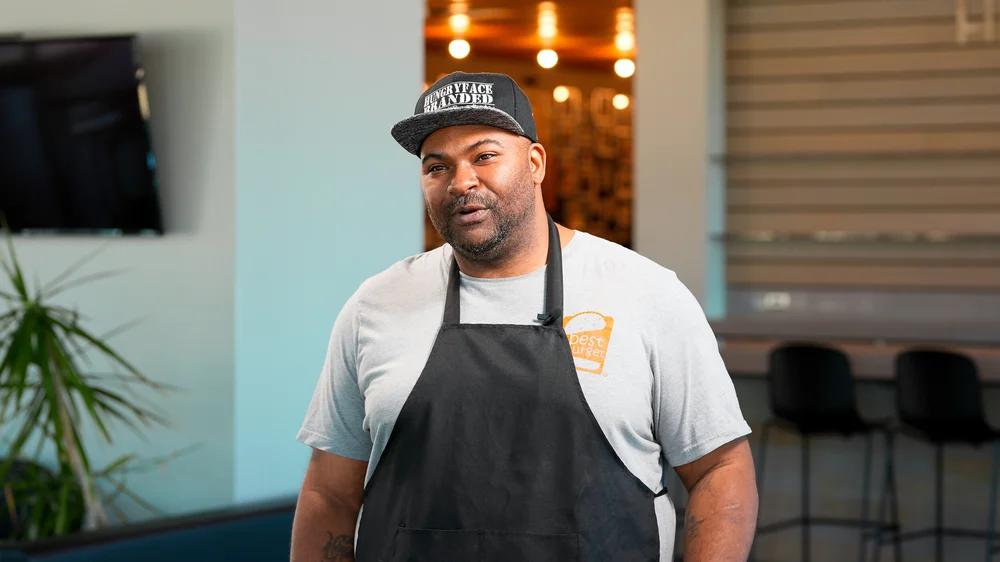 . Omaha residents Ashlei Spivey and her partner who goes simply by the name Universal own and operate Best Burger. Today Universal Allah of Best Burgers is cooking burgers and toasting buns in the No More Empty Pots Commercial Kitchen. Best Burger Bar in Omaha America.